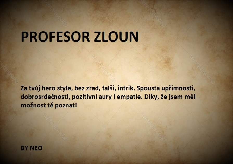Ale i tak se snažil Odporko bojovat a snažil se mě přesvědčit abych dál Zlouna, ale já prostě nemohl ustoupit. A fakt mě mrzelo že jsem ho musel napsat. No a teď jsem ve finále, byla to dlouhá a zábavná cesta.